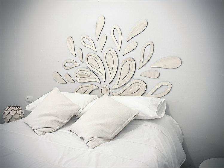 Hermoso cabecero de cama Mandala Savasana. Finamente elaborado, una decoración de pared en madera original y única.